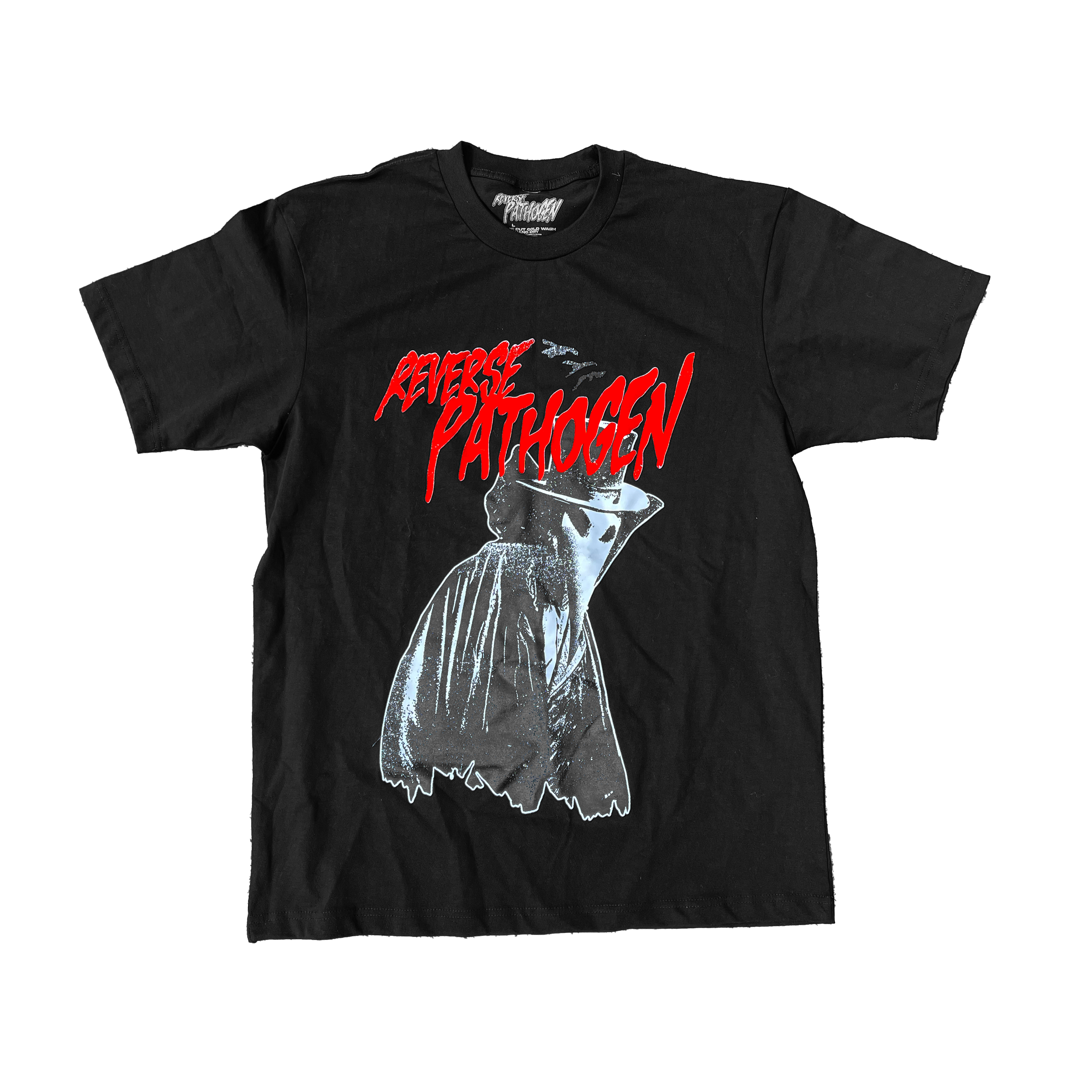 - Front and left leg feature bold "Reverse Pathogen" screen prints